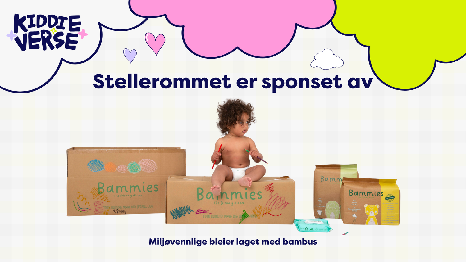 Bammies deltar på KiddieVerse og sponser vårt stellerom med sine myke og miljøvennlige bambusbleier, for en bleiepause som er like trygg for babyen som for planeten.