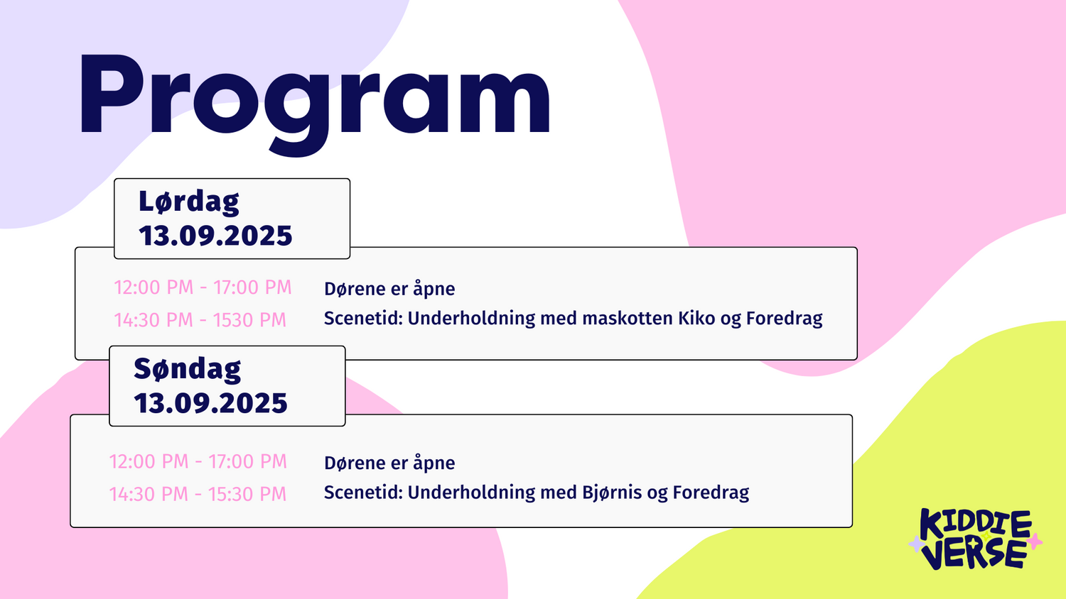 KiddieVerse er Kristiansands første babymesse for alle faser av småbarnslivet, med utstillere fra Norge, Sverige og Danmark. Her kan du prøve produkter, få ekspertråd, sikre messetilbud og la barna ha det gøy med gratis aktiviteter og underholdning.